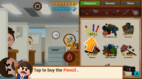 暴打老板是休闲解压类趣味闯关手游,主打让玩家通过暴揍老板宣泄压力,玩法魔性且解压,游戏支持自定义老板名字,可使用130多种搞笑武器攻击,搭配无限金币与钻石的资源优势,还能解锁关卡、体验多样场景,整体过程无需承担责任,带来舒适的解压体验。