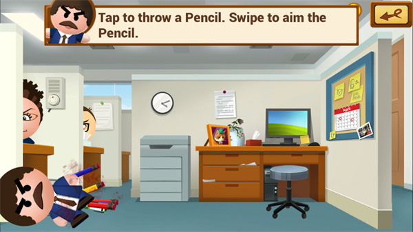 1、触发攻击道具,与场景中的铅笔等攻击道具互动,对目标发起攻击,这是游戏的核心操作。