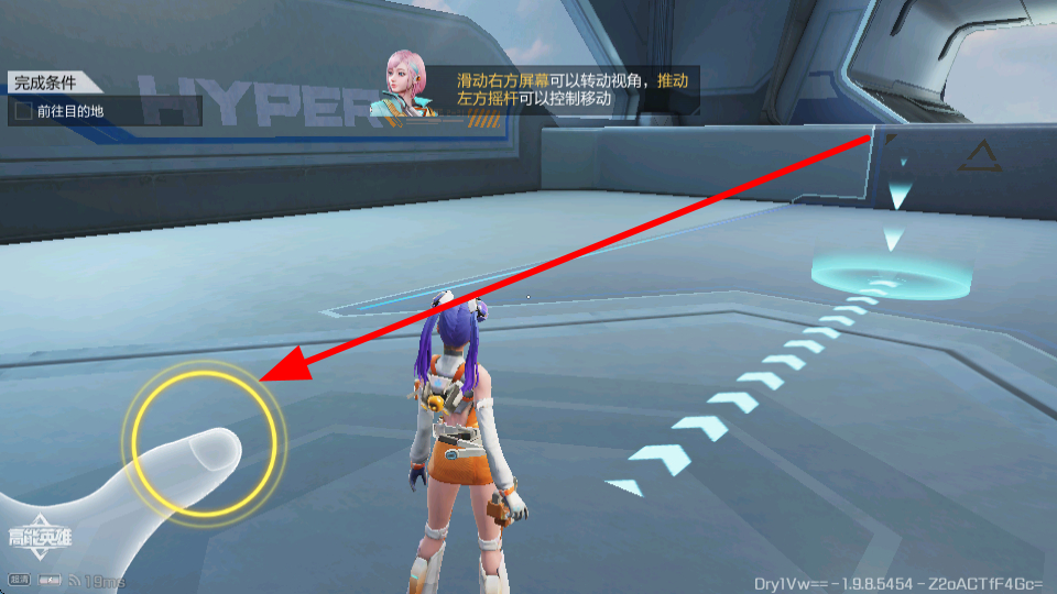 2、前往目的地,推动左方摇杆可以控制角色移动,遵循路径提示,能顺利到达目标位置。