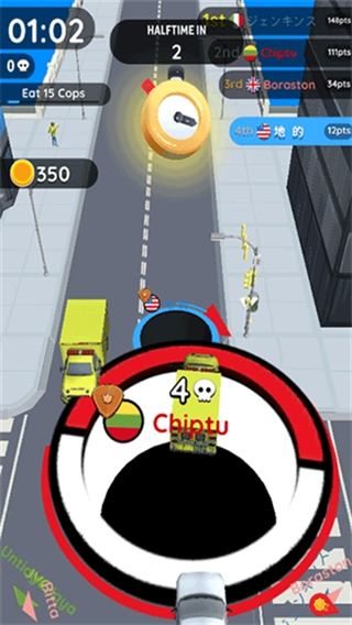 3、在规定时间内,不断移动黑洞,吞噬更多物品提升等级和进度,同时注意躲避车辆。