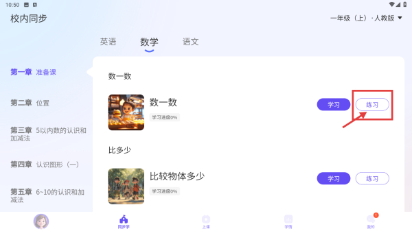 3、在数学板块,找到数一数条目,点击练习按钮,进入题目练习界面。