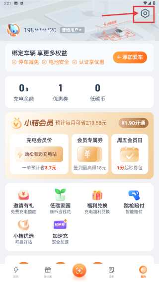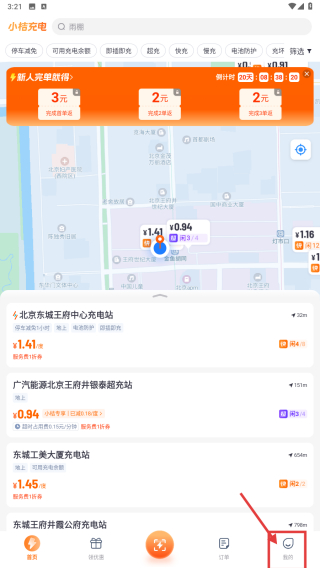 1、打开充电服务类应用,点击底部我的选项,进入个人中心页面。