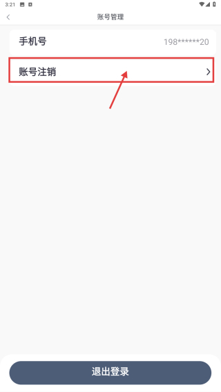 4、在账号管理页面,点击账号注销选项,发起账号注销操作。
