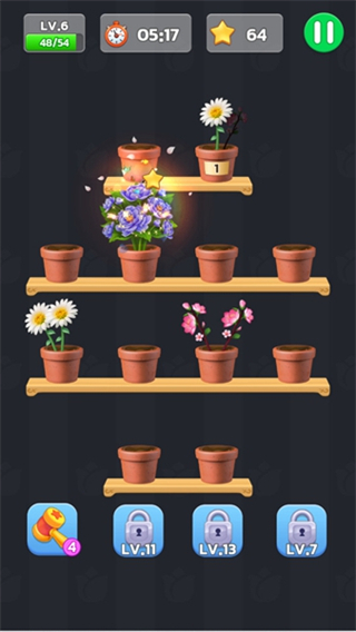 从杂乱盘面到有序插花消除,过程中能收获“整理干净”的心理满足感,这种独特体验区别于普通消除的纯粹得分乐趣。