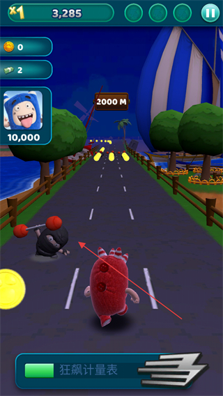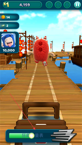 4、关注屏幕下方的狂飙计量表,积满能量后可触发狂飙状态,帮助萌兵快速冲刺并撞开障碍。