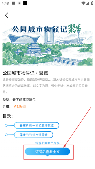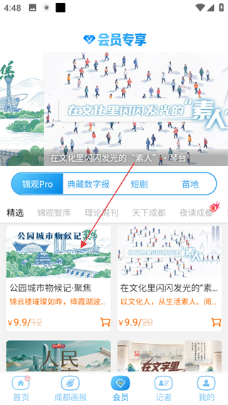 2、在会员页面,点击公园城市物候记聚焦内容,进入其详情页面。