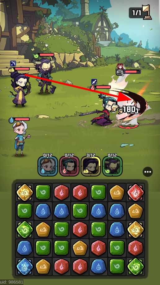 1、在游戏下方的宝石区域,通过移动宝石,把3枚同色的宝石连成一排,这样就能触发攻击条件。