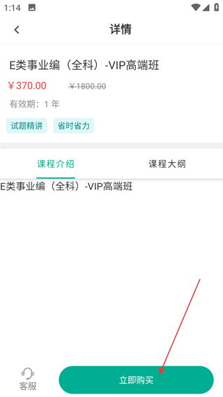 3、在课程详情页面,点击立即购买,可完成课程购买操作。