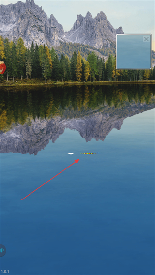 1、进入游戏,在美丽的山水场景中,点击水面确定钓鱼位置,抛出鱼钩。