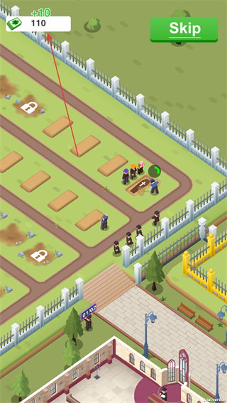 4、完成下葬任务后,获取金钱奖励如+10,金钱数值变为110,继续进行后续的殡葬业务,解锁新区域和功能。