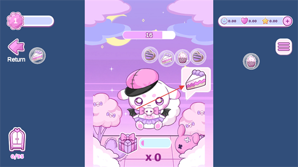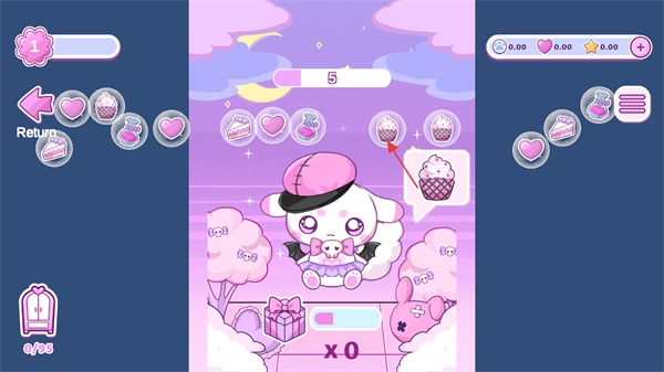 2、点击空中漂浮的蛋糕、爱心等物品,收集它们来填充进度条,如进度条显示5。