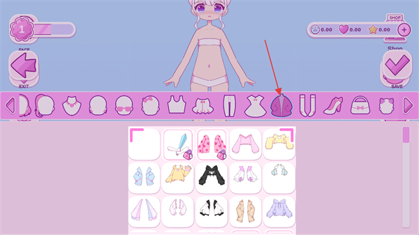4、选择上衣类别中的衣服,点击给角色穿上,打造可爱造型。