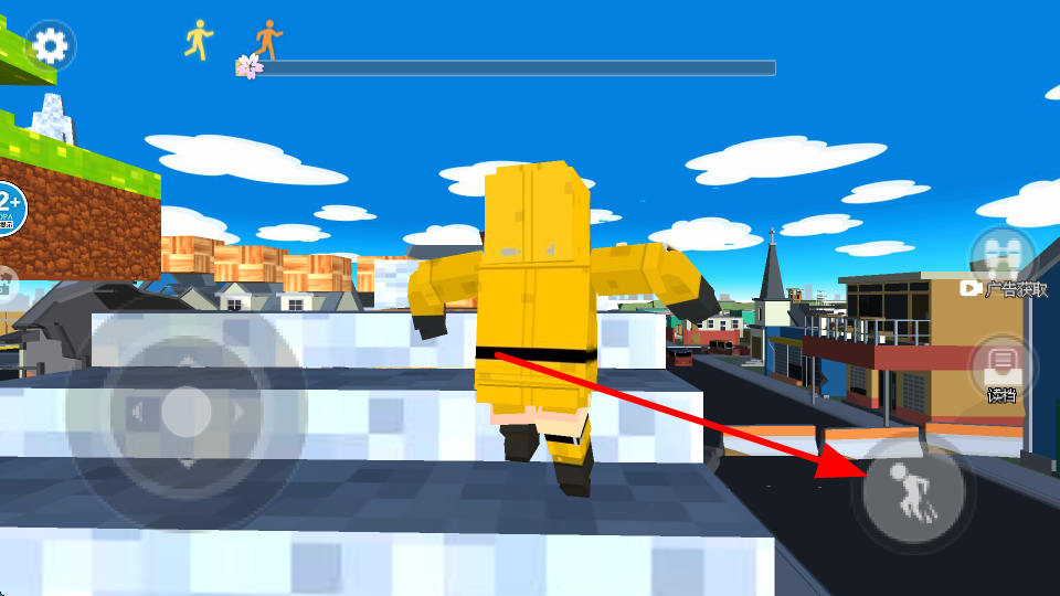 2、点击跳跃按钮,可以让角色快速跃起,可轻松跨越障碍,也能躲避从后方追来的老板。