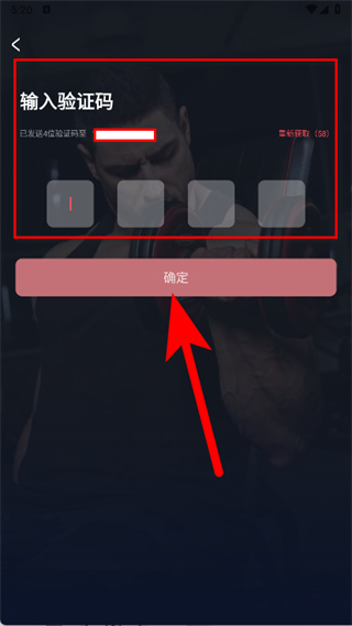 4、在输入验证码页面,输入收到的验证码后,点击确定,完成注册登录。