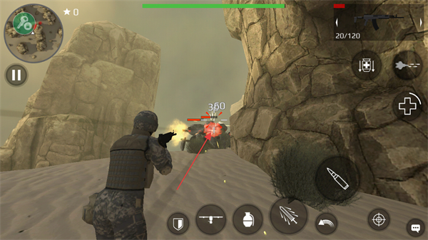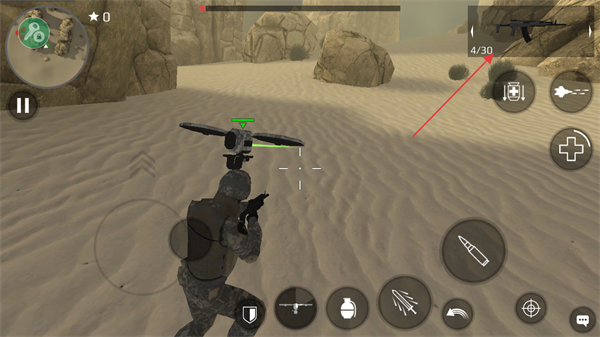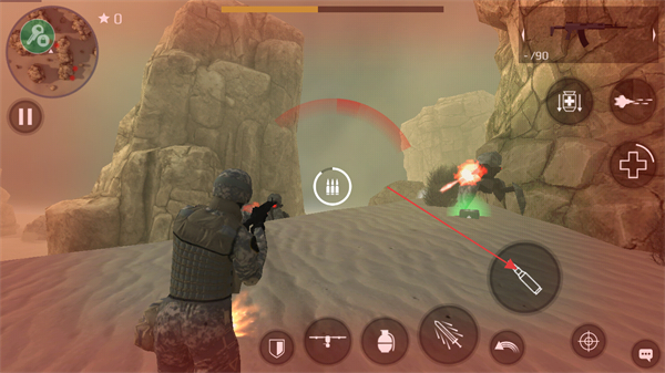 2、发现敌人后点击射击按钮攻击,留意敌人攻击并找掩体躲避。