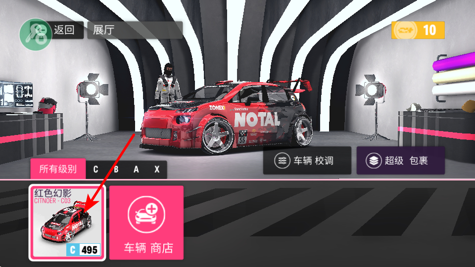 2、选择车辆,在车辆展示区域,点击想要切换的车辆如红色幻影,查看其详细信息。
