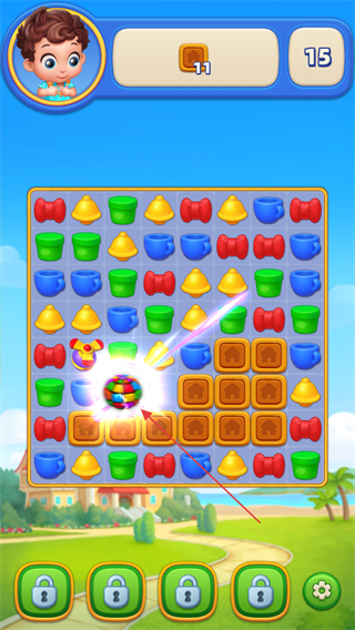 3、当出现特殊道具如彩色球时,点击或凑齐条件触发其特效,消除更多道具。