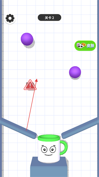 1、进入关卡2,观察杯子上方紫色球体位置及周边环境。