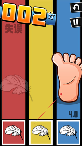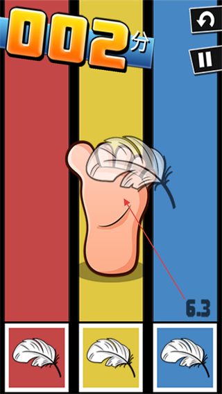 1、进入关卡1,看清任务说明,需在7秒内给脚挠痒,点击下方3个颜色按钮操作。