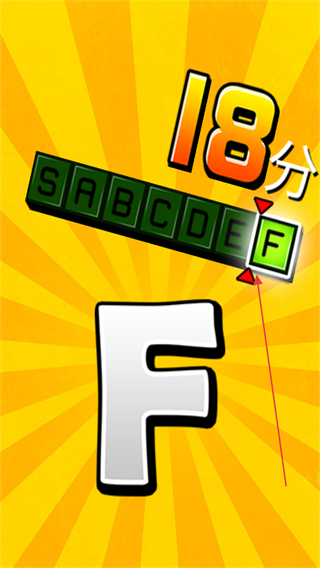 4、根据得分,游戏会给出评价对应字母等级,如F,尽量获取更高分数以通过关卡,进入下一关挑战。