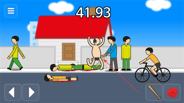 2、屏幕下方有操作按钮如拳头、棒球棍图标,点击按钮操控角色做出相应动作,对场景中的目标进行攻击或互动。
