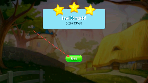 4、成功让小猫到达安全位置后,完成关卡,根据分数获得星级评价,点击Next进入下一关。