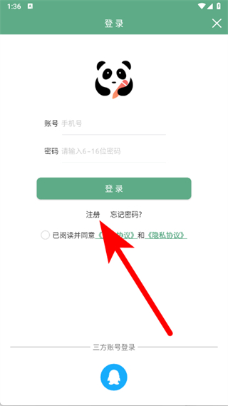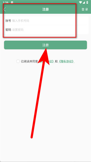 4、依次输入手机号码和需要设置的密码,随后点击注册按钮,完成账号注册。
