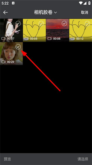 2、选择相机胶卷里要提取音频的视频,进入音频提取页面。