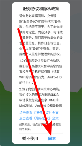 1、打开掌上环卫,在弹出的服务协议和隐私政策窗口中点击同意。