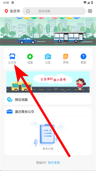 2、城市设置好后,点击界面中的公交车选项。