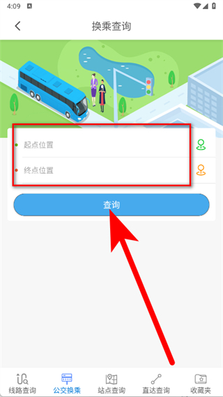 4、填写起点位置和终点位置,点击查询按钮,就能获取公交换乘方案。