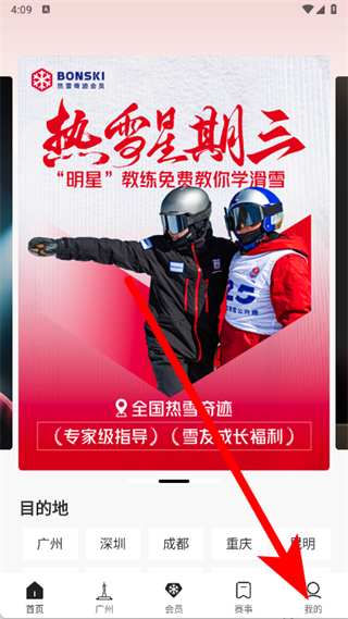 通过APP实现雪票预订、私教预约、赛事报名,支持定位推送附近雪场,同步雪场实时信息,为用户提供行前到行后的一站式数字化服务。