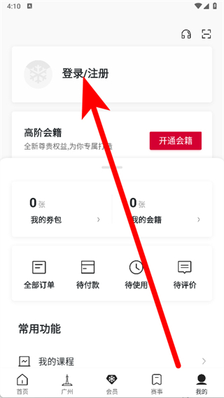 3、在个人页面中,点击登录注册按钮,在手机号登录注册页面。
