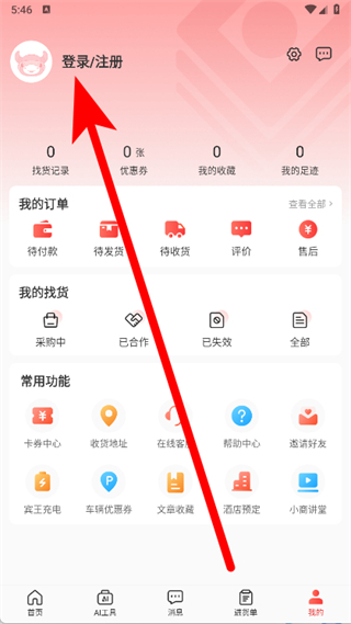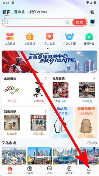 1、打开小商品城,点击底部导航栏最右侧的我的,进入个人中心页面。