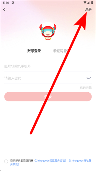 3、进入登录注册界面后,点击右上角的注册按钮,切换到账号注册页面。