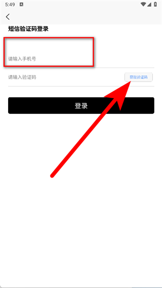 3、在短信验证码登录界面,输入手机号后,点击获取验证码。