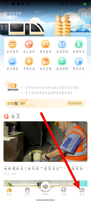 1、打开郑州地铁,点击底部会员,进入会员页。