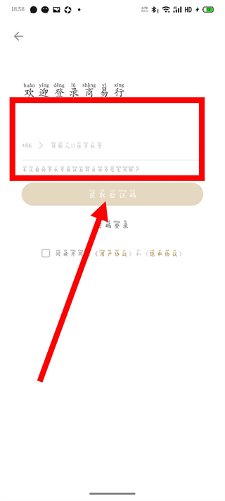 3、输入手机号,点击获取验证码。
