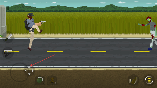1、进入游戏,通过屏幕左下角的虚拟摇杆操控角色移动,靠近僵尸。