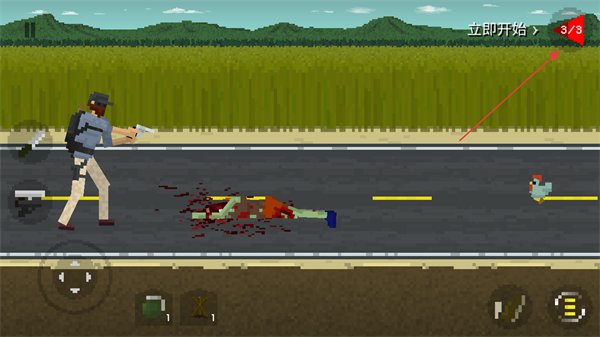 4、持续攻击僵尸,将其消灭,留意屏幕右上角的提示如立即开始>3/3,完成指定数量僵尸的击杀,顺利通关。