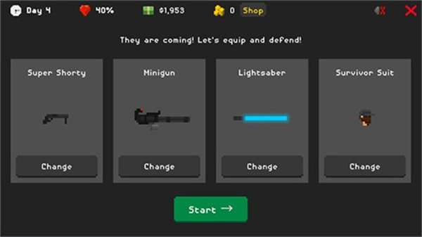 3、当僵尸靠近角色,血量降低时,可切换武器,利用手中枪械射击僵尸。