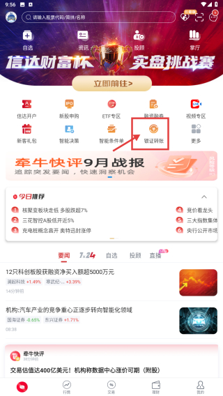 2、在首页页面,找到银证转账板块,点击进入相关功能页。