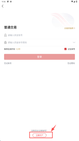3、在功能页中,选择立即开户选项,进入网上开户界面。
