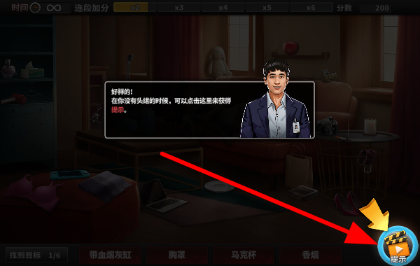 2、如果没有头绪,可点击提示按钮,获取寻找物品的线索,借助线索更高效地找到目标物品。