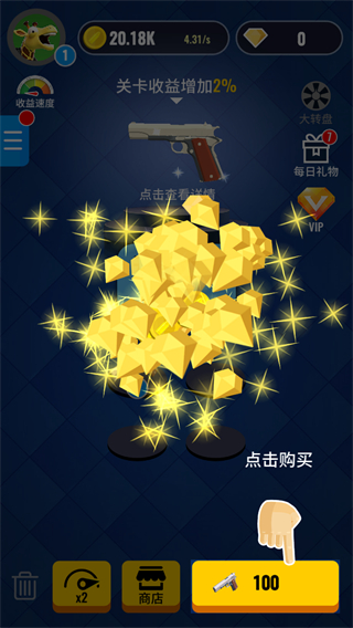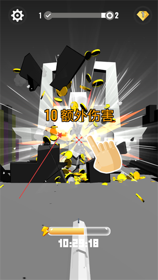 3、点击屏幕触发10额外伤害效果,击碎障碍获取金币。
