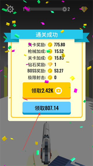 4、通关成功后,点击蓝色的领取807.14按钮领取奖励。
