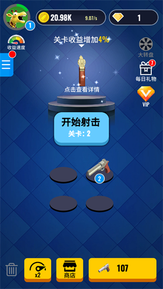 2、瞄准带有黄色钻石的红色十字标志射击,获取钻石。