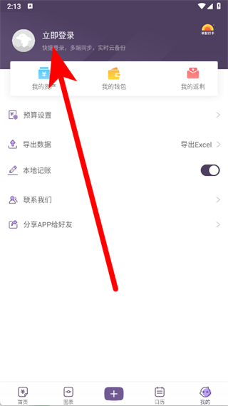 兼容iOS与Android系统,界面分为首页、图表、日历、我的四大板块,排版清晰,老年用户也能快速上手,适配各类人群记账需求。