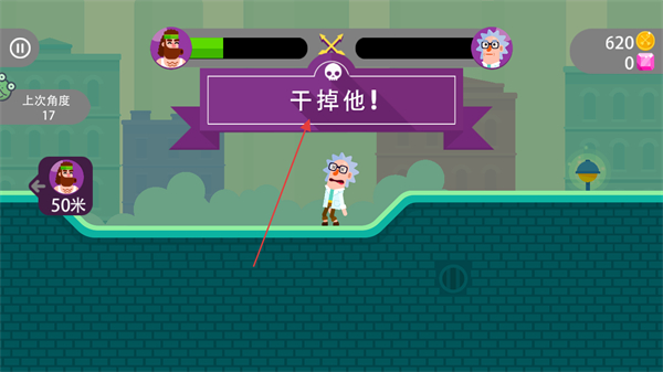 1、看到屏幕上方显示干掉他!,准备攻击对手。