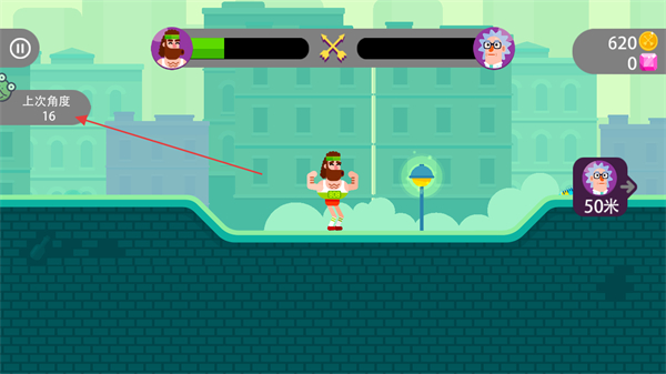 4、参考左侧上次角度16,总结经验,为下一次射箭做准备。